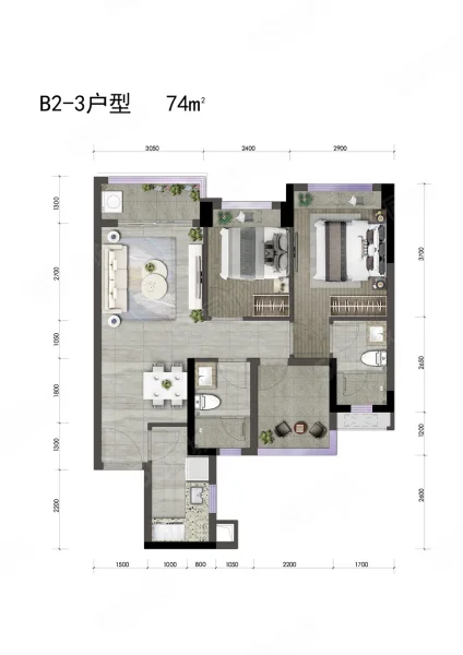 3 室 2 厅 2 卫